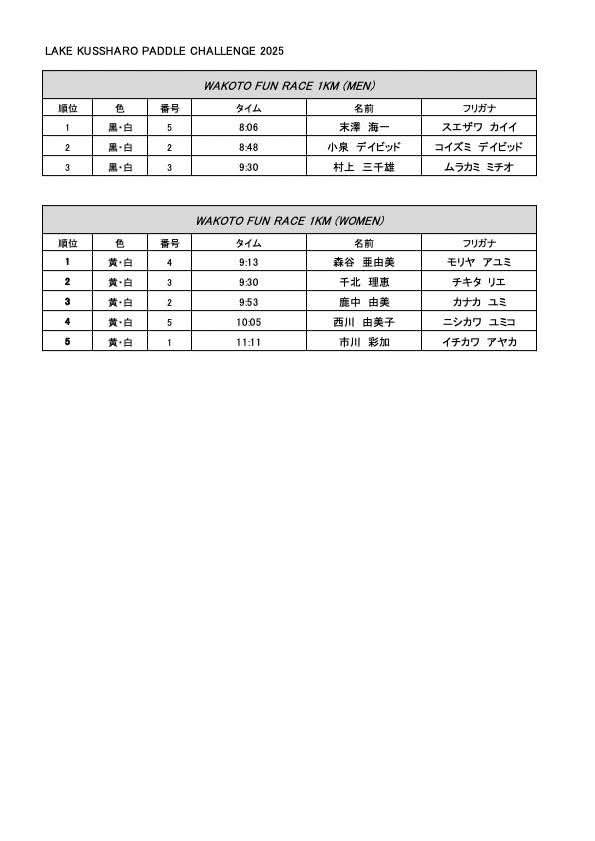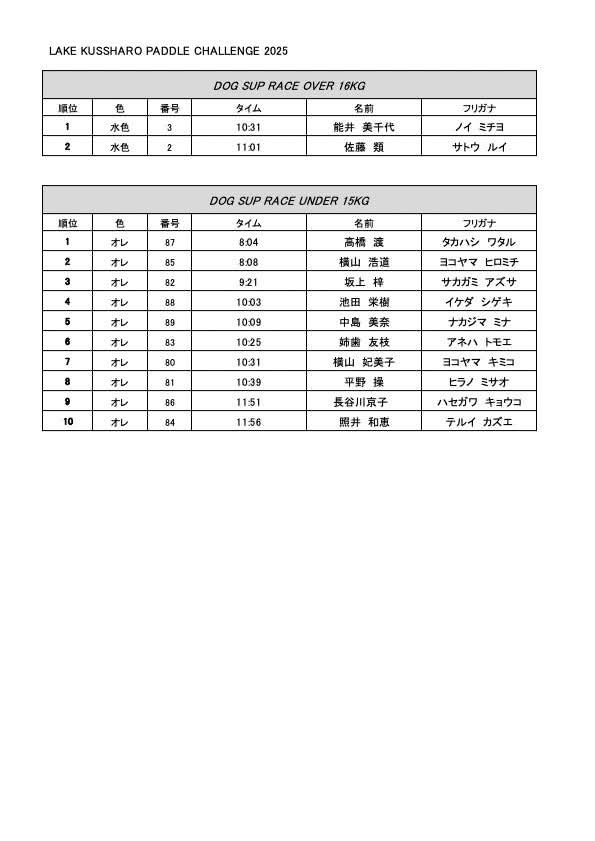 2025年09月07日に開催されましたLAKE KUSSHARO PADDLE CHALLENGE 2025にご出場の皆様、ありがとうございました。